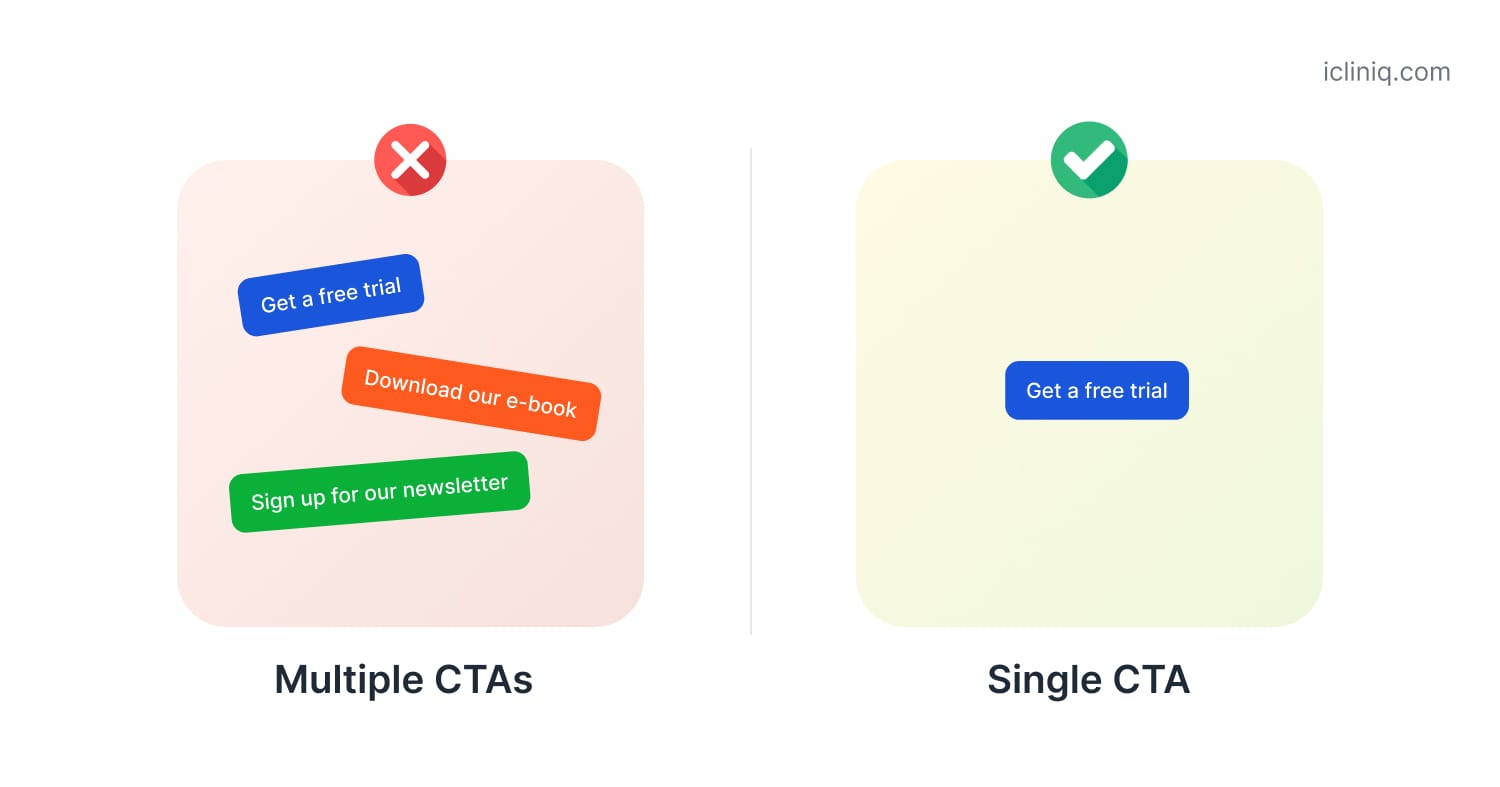 This one’s simple. In an attempt to get the most out of your landing page, don’t dump the page with multiple CTAs and confuse your visitors. Create your entire landing page around a single action and watch your conversion rate shoot up.